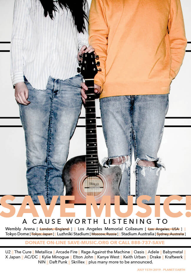Save Music! is a benefit concert intended to save music from where it was heading when it comes to online streaming and the amount of money artists are being paid by companies such as Spotify.